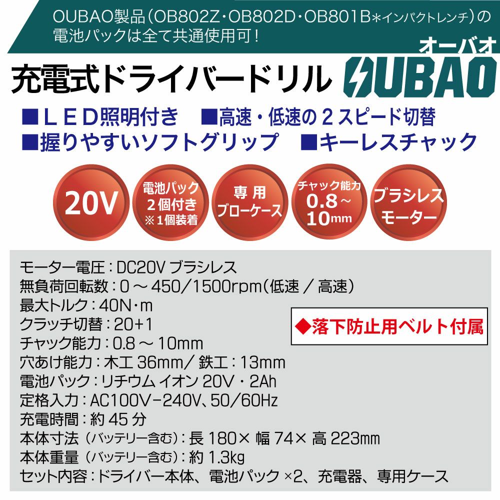 他の画像を見る 作業に便利なLED照明付き OUBAO 充電式ドライバードリル OB802D-2AH 充電式 ドライバー ドリル 落下防止ベルト付 工具 ガレージ用品 当店特別価格 ¥ 23,523 税込 会員特別価格 ¥ 23,288 税込 詳細を見る お気に入りに登録する