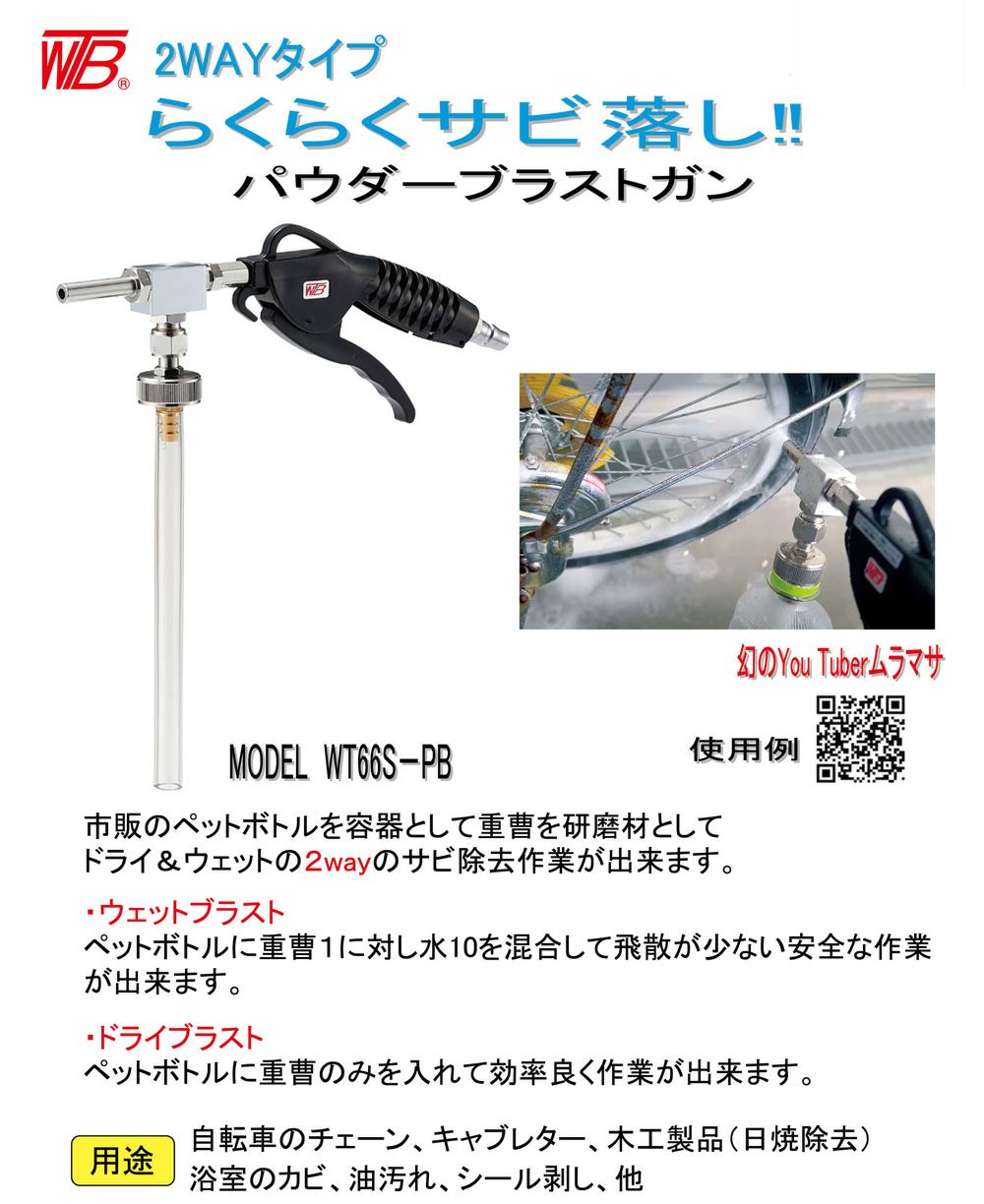 他の画像を見る ペットボトルに取り付けられるブラストガン!ドライ&ウェットの2Wayのサビ除去作業 パウダーブラストガン WT66S-PB WTB ペットボトルに取り付けできる 自転車のチェーン 油汚れ シール剥がし ワタベコーポレーション 当店特別価格 ¥ 13,873 税込 会員特別価格 ¥ 13,735 税込 カートに入れる お気に入りに登録する