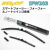 あらゆるフロントガラスの曲面を考慮し、ブレードの長さに応じて適度な“しなり” を持たせたベースフレームに、ワイパーゴムを支える小型フレームを4つ組付けています。その複数の“しなり” を持ったフレームでワイパーブレードの中央部分から先端部分まで均一なワイパー圧がかかり、ガラス曲面への密着性を向上させ拭き残しを低減します。