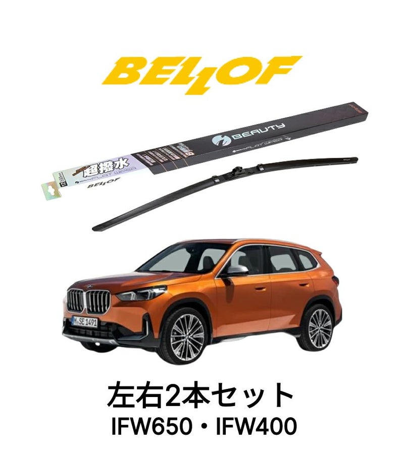 BMW X1 U11 型式 #2E# 年式 2023.2- BELLOF アイ・ビューティーSフラットワイパー IFW650 IFW400 セット 超撥水 輸入車 国産車 ベロフワイパー ブレード 超撥水 シリコンゴム 雨用 フロント2本セット