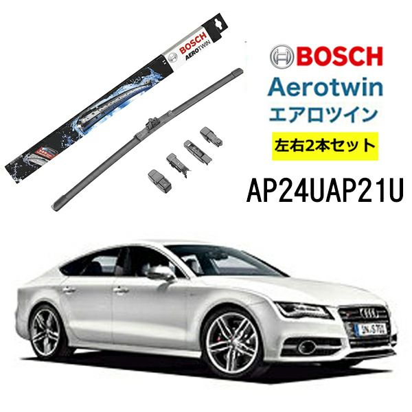 アウディS7、運転席・助手席のセットです。 BOSCH ワイパー Audiアウディ S7 運転席 助手席 左右 2本 セット AP24U AP21U ボッシュ エアロツイン 型式:4G| AERO TWIN フラットワイパー 適合 ワイパーブレード 替え ウインドウケア ビビリ音 低減 ポリマー コーティング ゴム