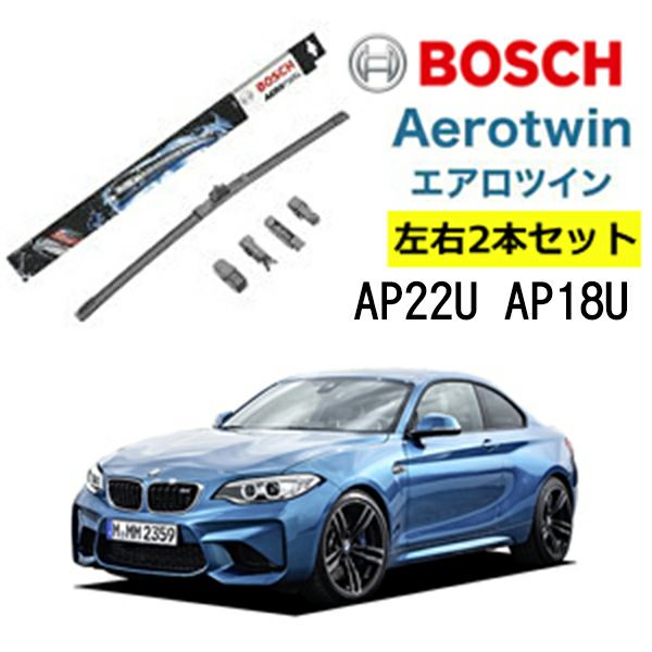 BMW M2、運転席・助手席のセットです。 BOSCH ワイパー BMW M 2 シリーズ 運転席 助手席 左右 2本 セット AP22U AP18U ボッシュ エアロツイン 型式:F 87| フラットワイパー 適合 ワイパーブレード 替え ウインドウケア ビビリ音 低減 コーティング ゴム