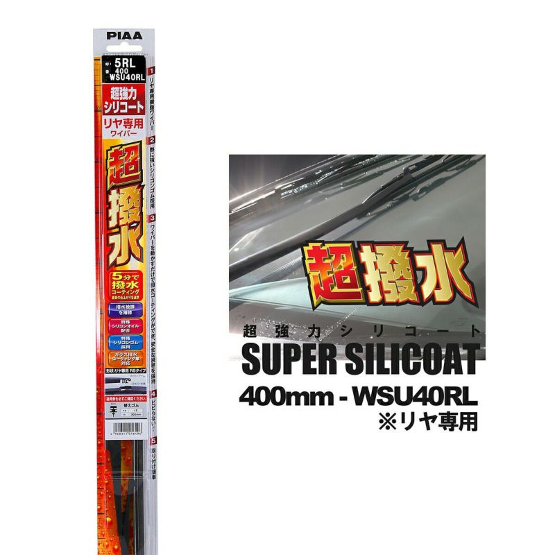 5分で撥水!最高品質シリコンゴム採用 PIAA ピア WSU40RL 呼番 5RL 超強力シリコート リヤ専用 樹脂製ワイパーブレード 400mm RLタイプ 国産車 超撥水 シリコンワイパー