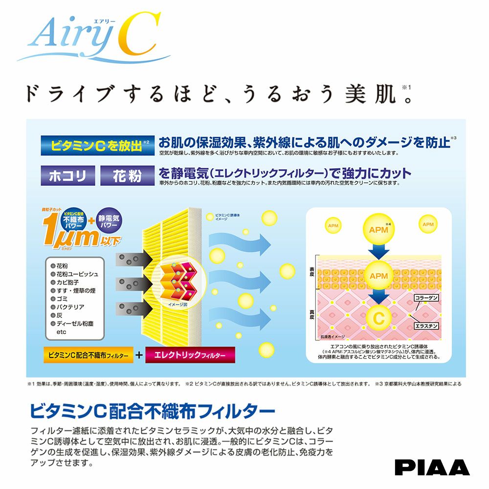 他の画像を見る エアコンフィルターにビタミンCのチカラ!! PIAA エアコンフィルター エアリーC 1個入 [トヨタ/ダイハツ車用] パッソ・コペン・タント 他 EV-4 ピア 当店特別価格 ¥ 3,168 税込 会員特別価格 ¥ 3,136 税込 カートに入れる お気に入りに登録する