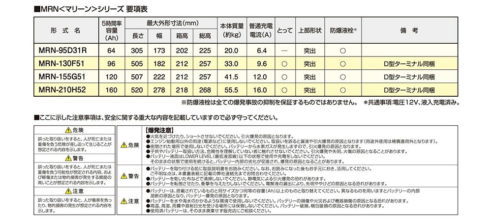 他の画像を見る GS YUASA ジーエスユアサ 船舶用高性能バッテリー MARINEシリーズ MRN-210H52 バッテリー GYB ハイブリット極板構成 ガラスマット付きエンベロープセパレータ 防爆液栓 D型ターミナルを同梱 当店特別価格 ¥ 78,760 税込 会員特別価格 ¥ 77,972 税込 詳細を見る お気に入りに登録する